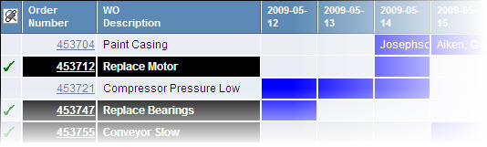 A graphical gantt chart representation of the work order backlog, with multiple scheduling and planning tools.. <more>